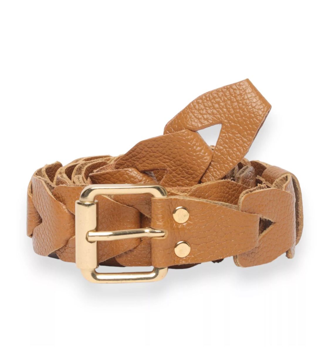 Cinto na cor caramelo.